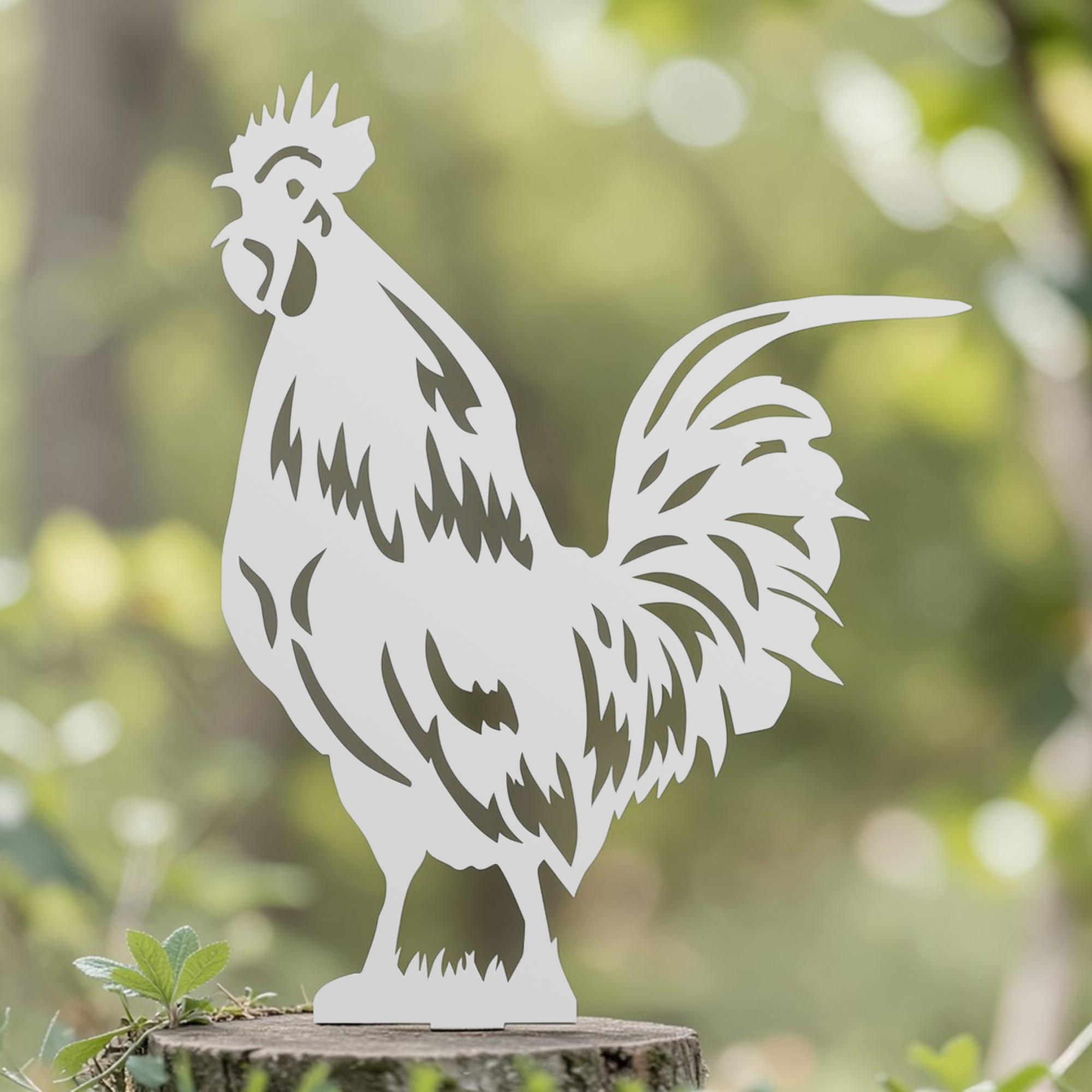 Realistyczna sylwetka koguta sprawia, że dekoracja wygląda naturalnie wśród roślin i doskonale komponuje się z ogrodową zielenią. Dzięki praktycznej konstrukcji ozdobę można łatwo wbić w ziemię, co pozwala szybko i stabilnie umieścić ją w wybranym miejscu ogrodu.