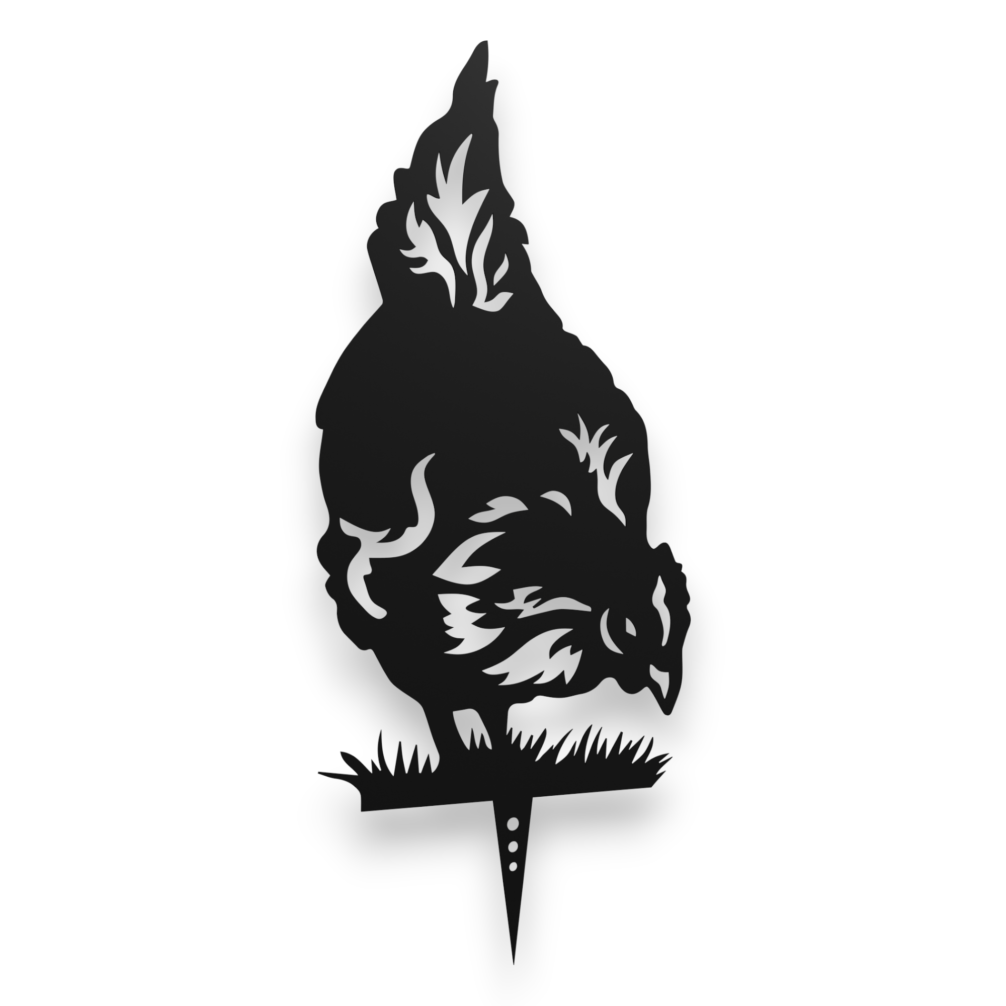 Kura ogrodowa szukająca ziarenka – metalowa dekoracja do ogrodu