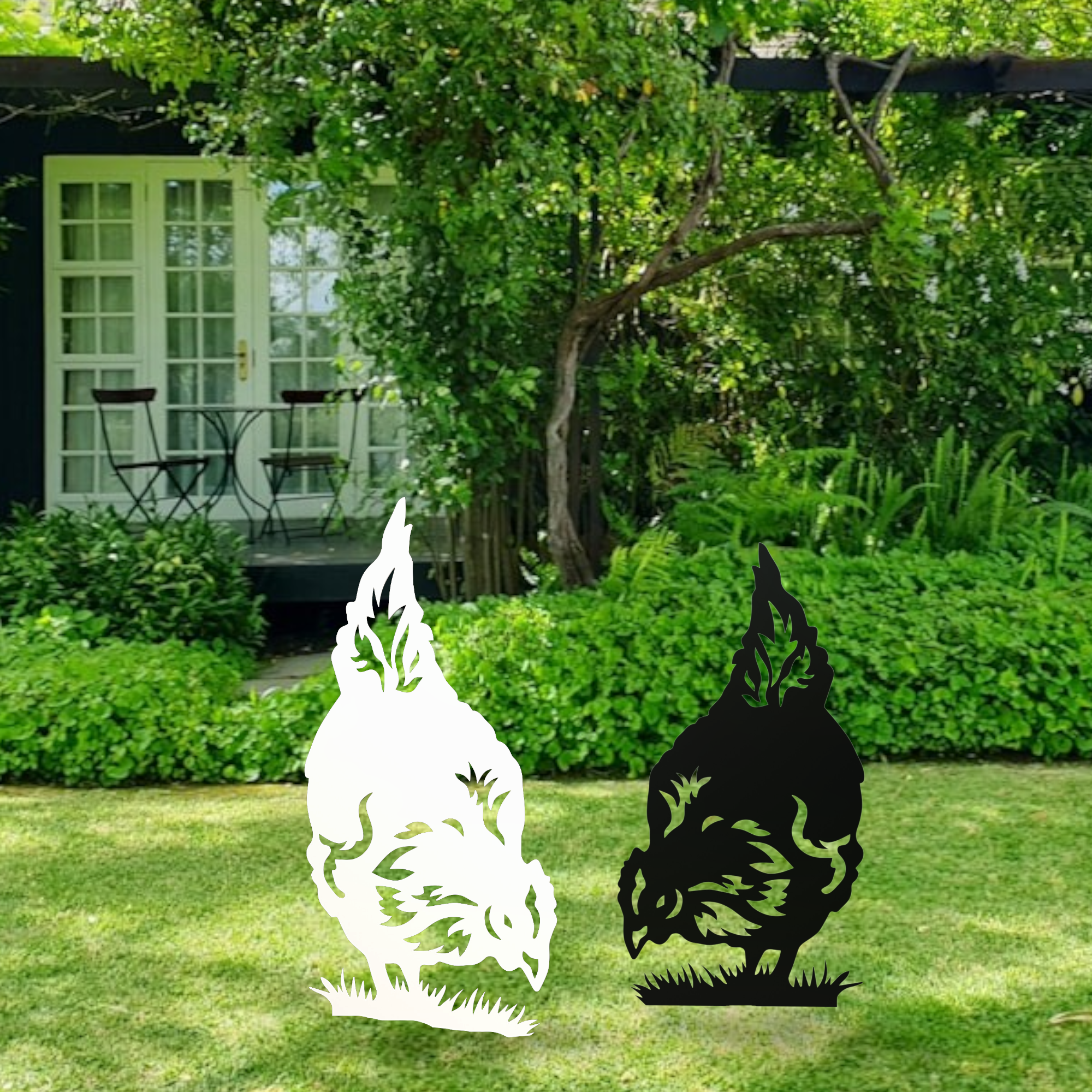 metalowa ozdoba ogrodowa w kształcie kury pochylonej