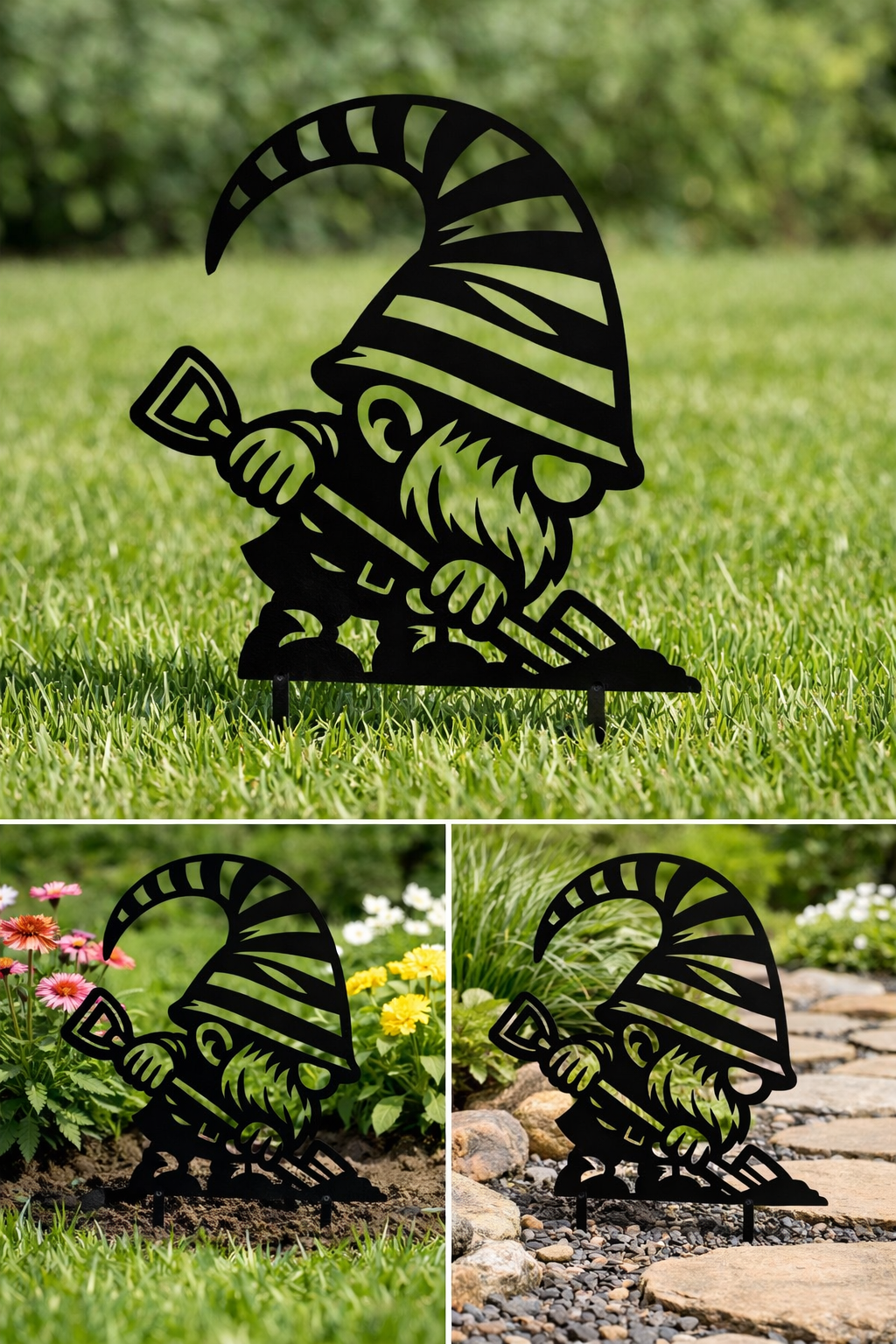 Trwała dekoracja ogrodowa wbijana w ziemię – idealna do trawnika i rabat.